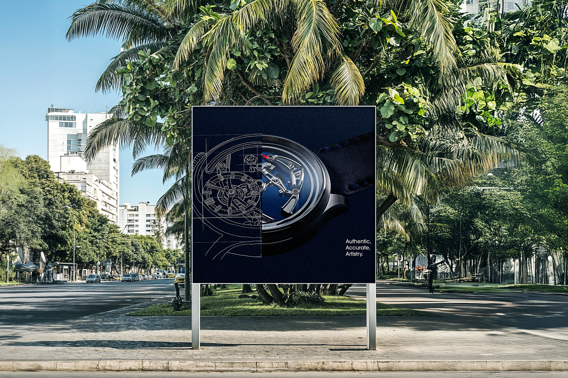 The visual direction takes the form of a watch blueprint, highlighting the technical precision behind each timepiece. By revealing the structure and detailing of the watch, the design communicates transparency, accuracy, and craftsmanship simultaneously.